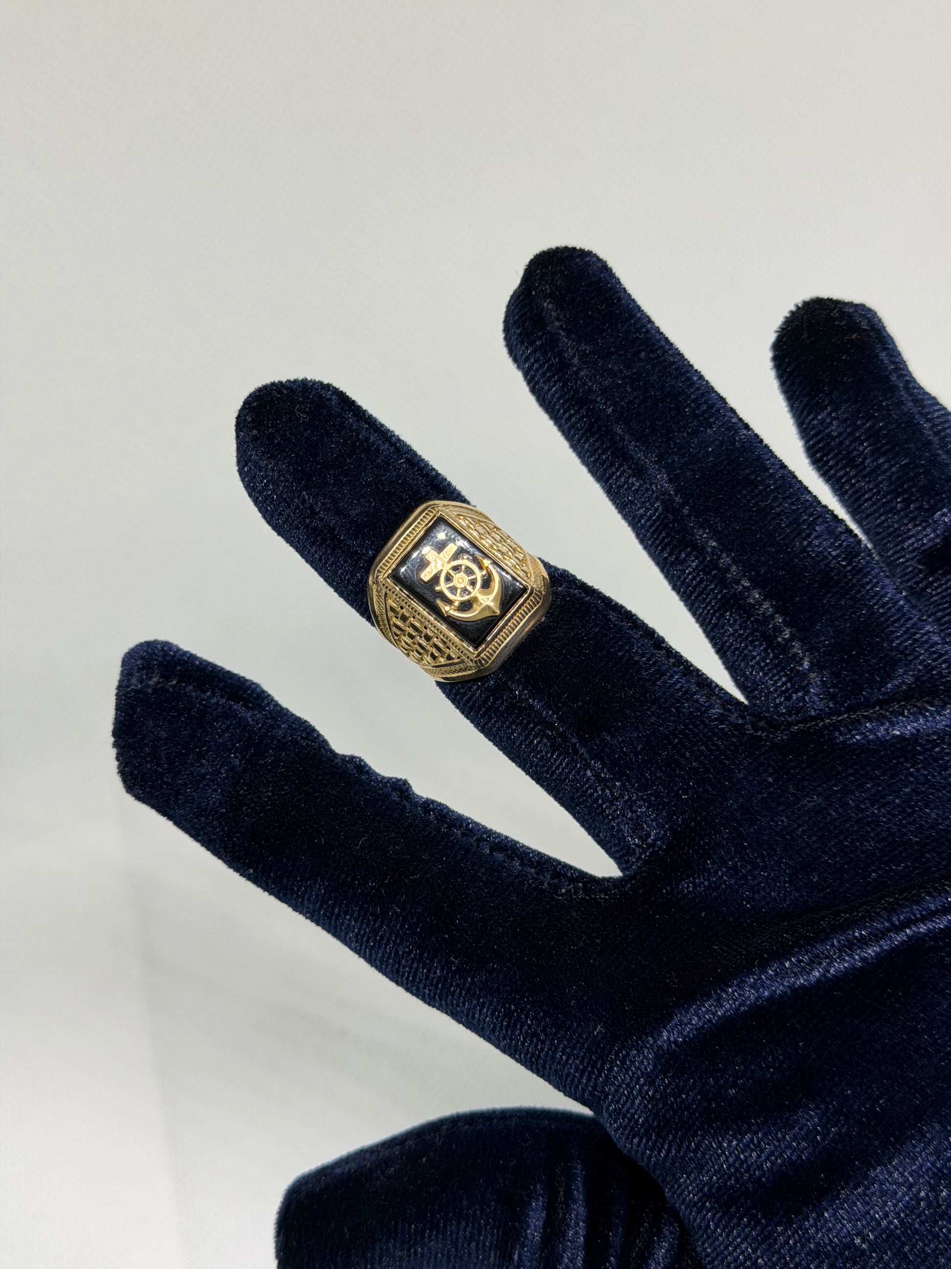 10K Solid Gold Anchor Ring - Size 8