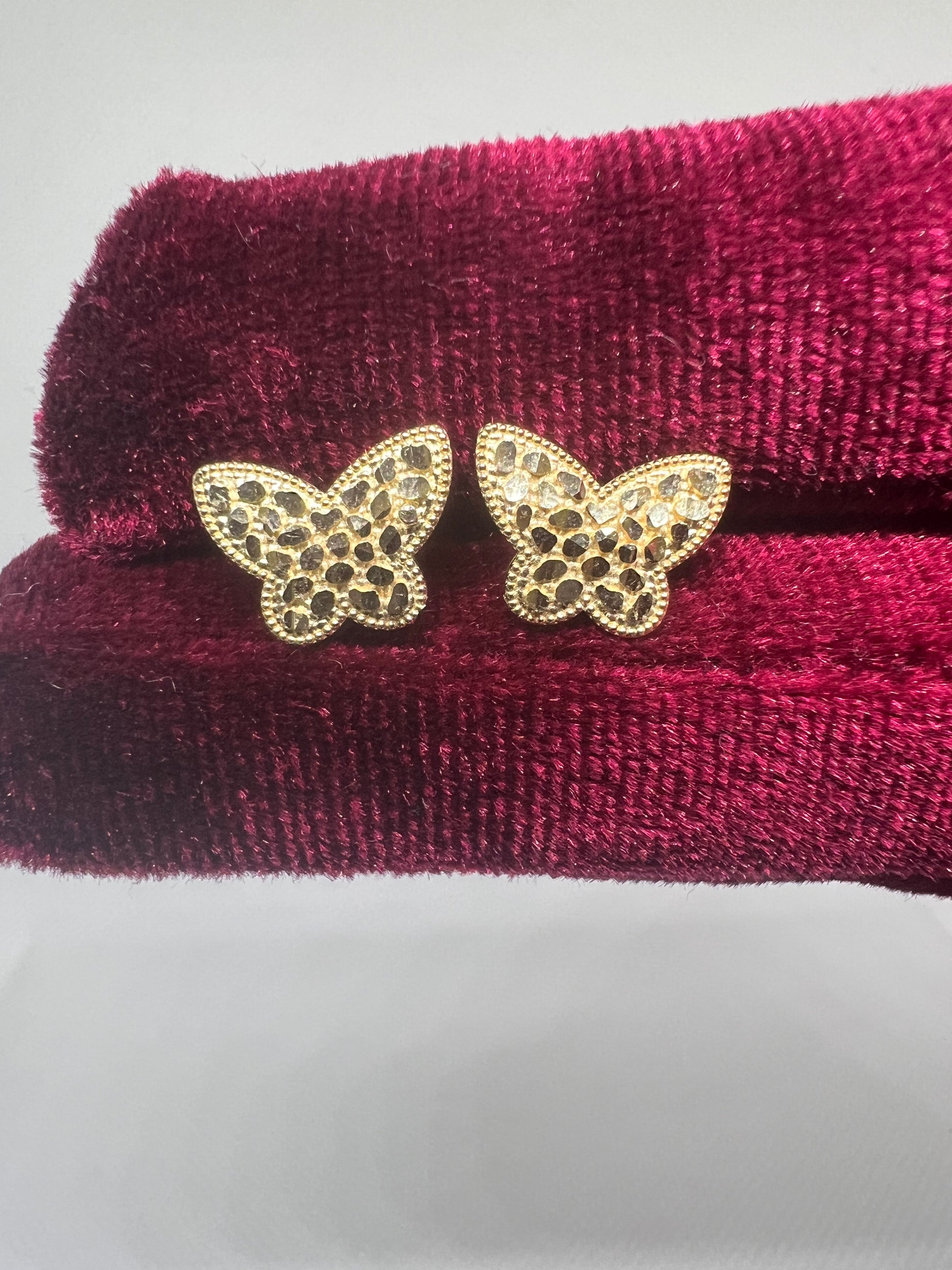 10K Solid Gold Butterfly Nugget Earrings - Chain Included