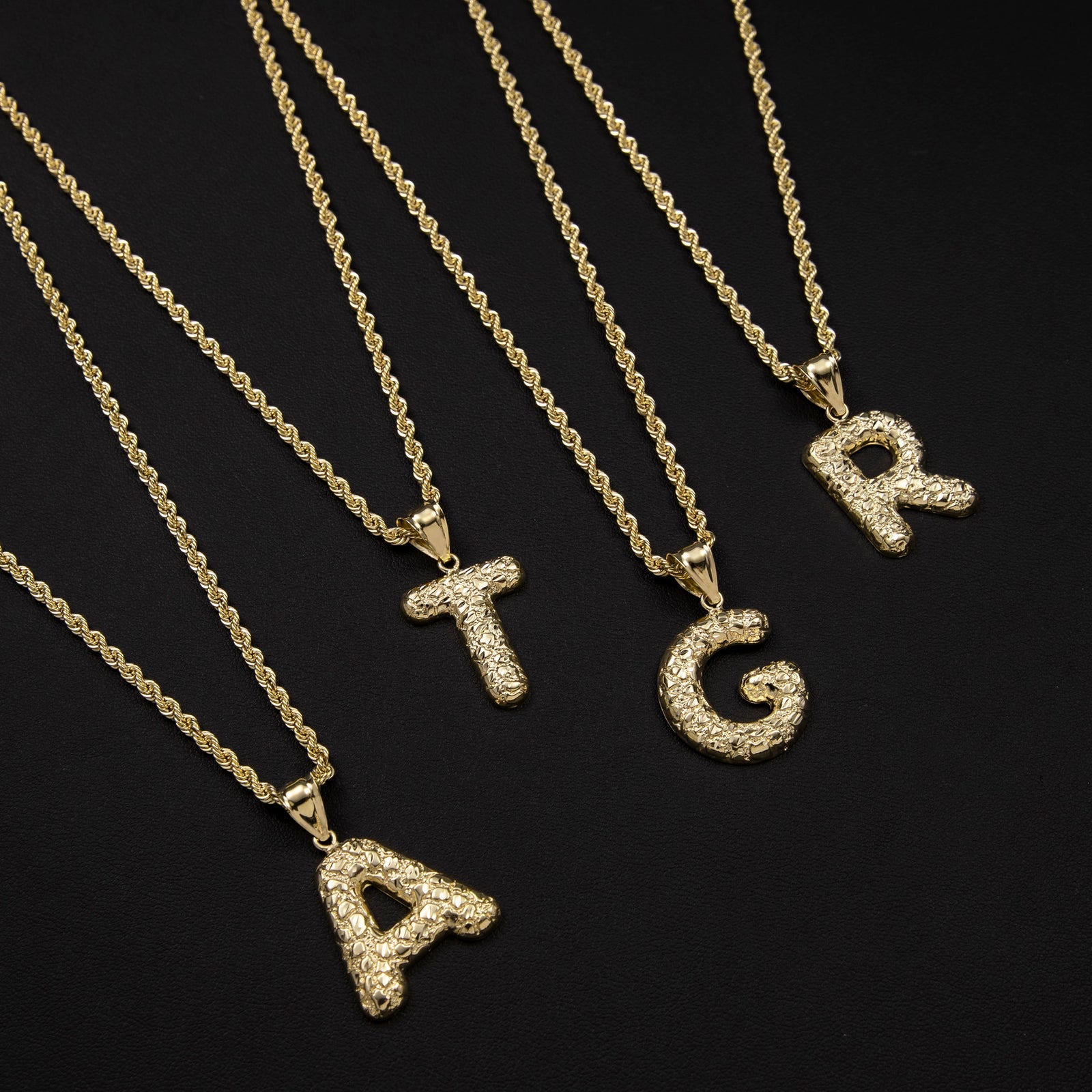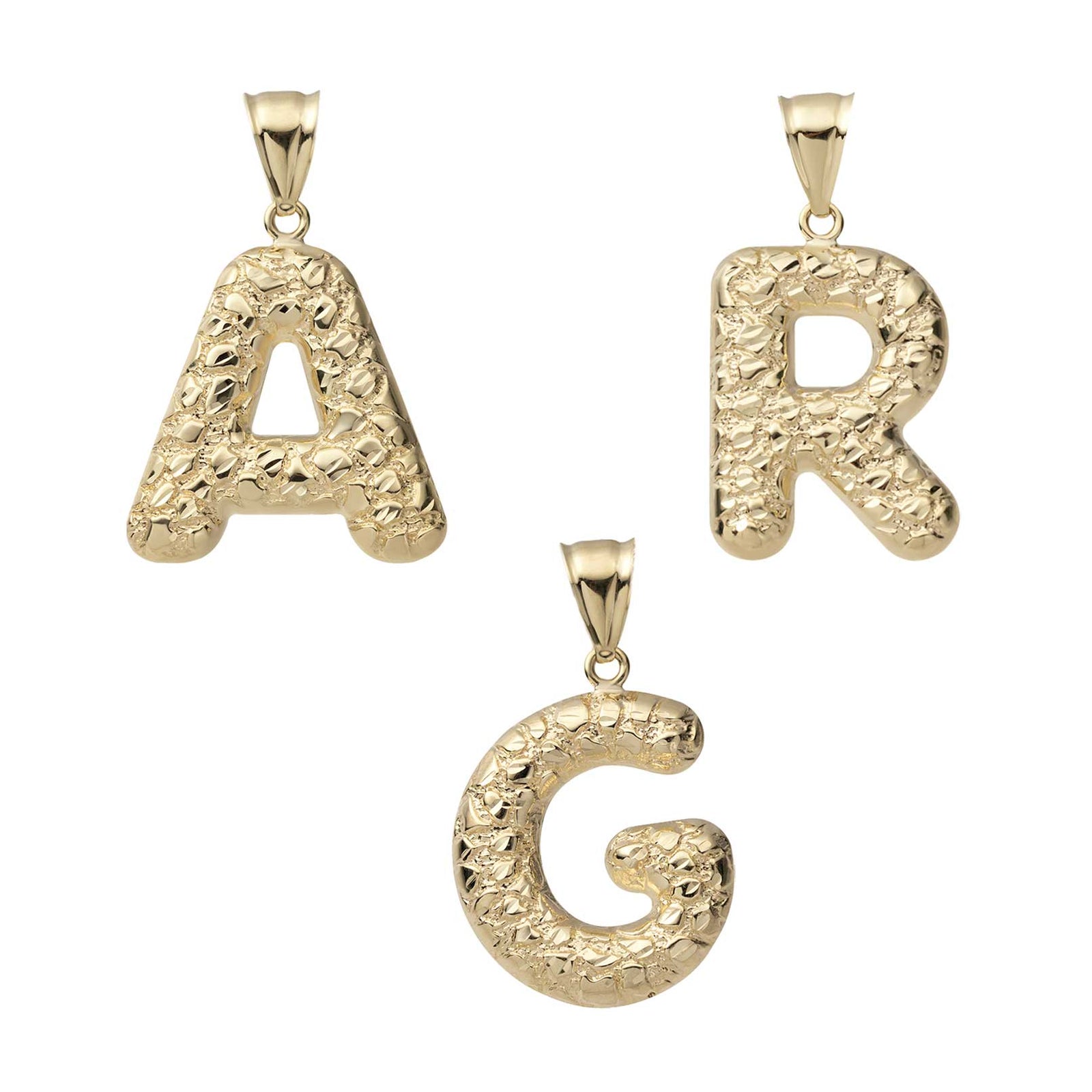 10K Solid Gold Nugget Initial Pendant