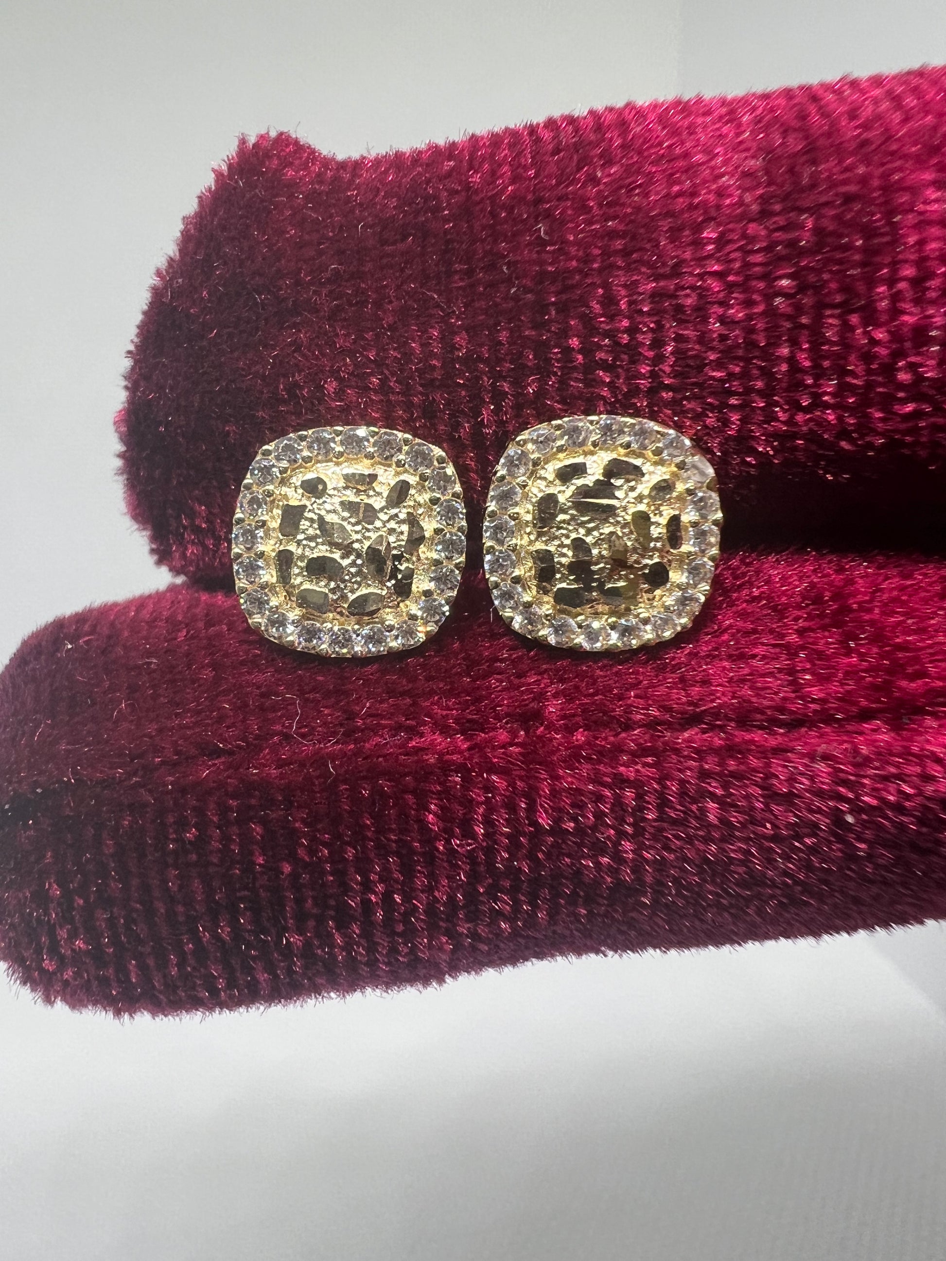 10K Glacier Cut Square Nugget Earrings - Chain Included