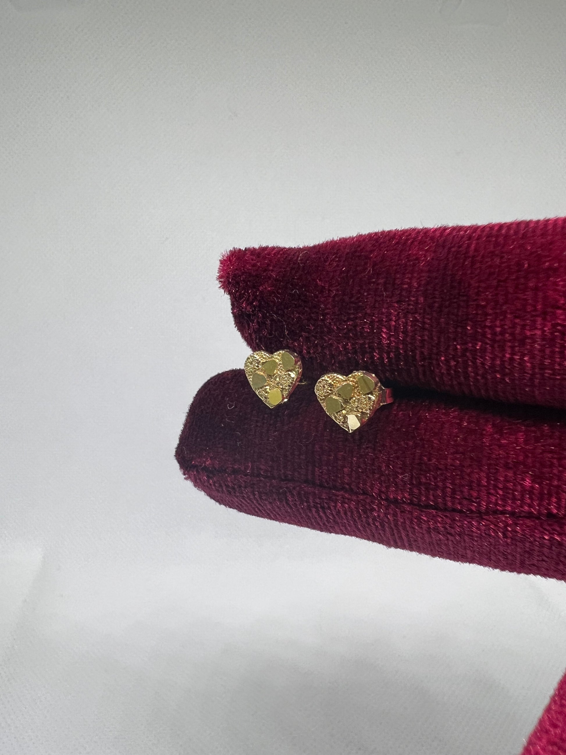 10K Yellow Gold Heart Nugget Earrings - Chain Included