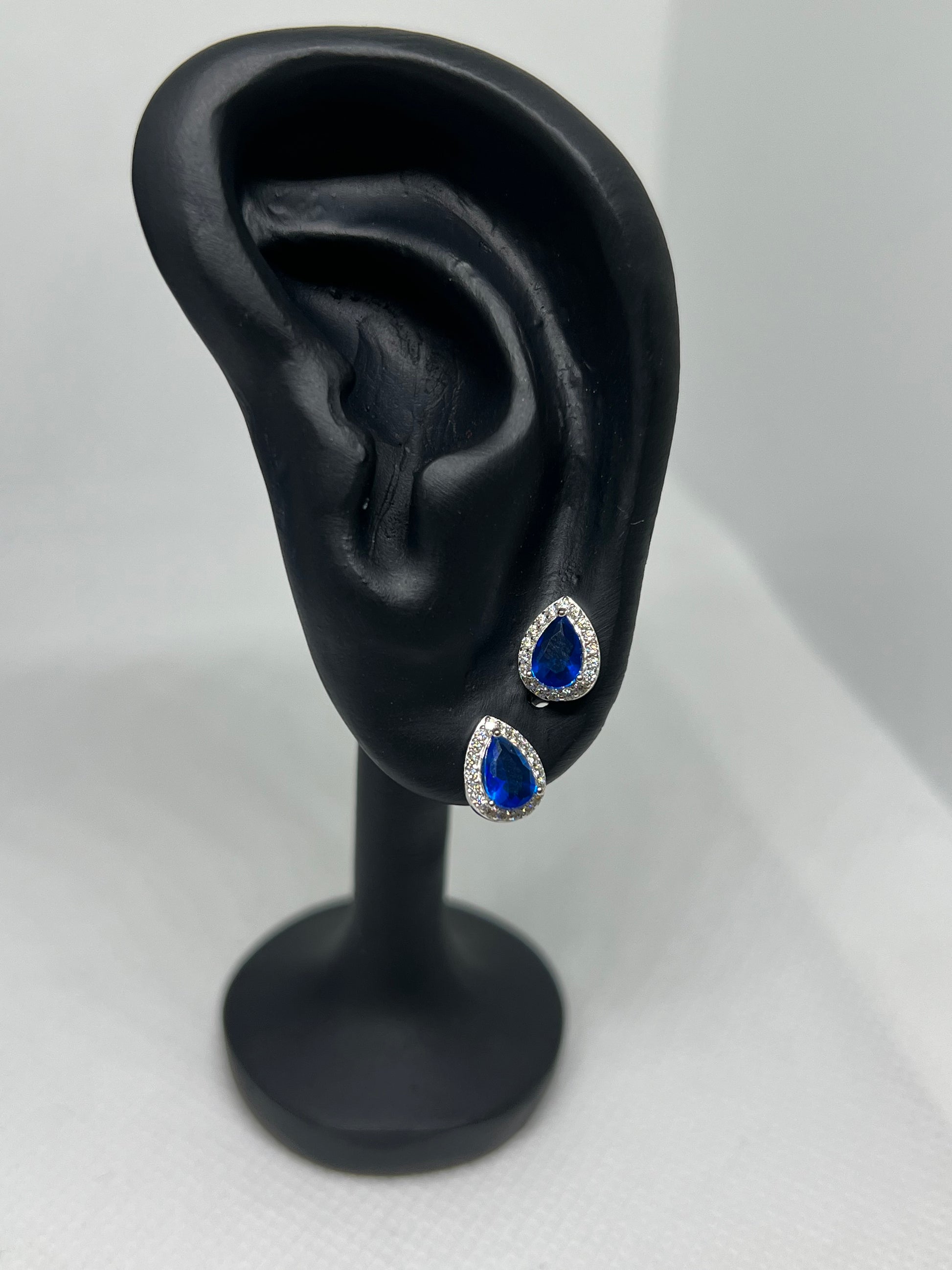 Sterling Silver Sapphire Teardrop Earrings and Pendant Set