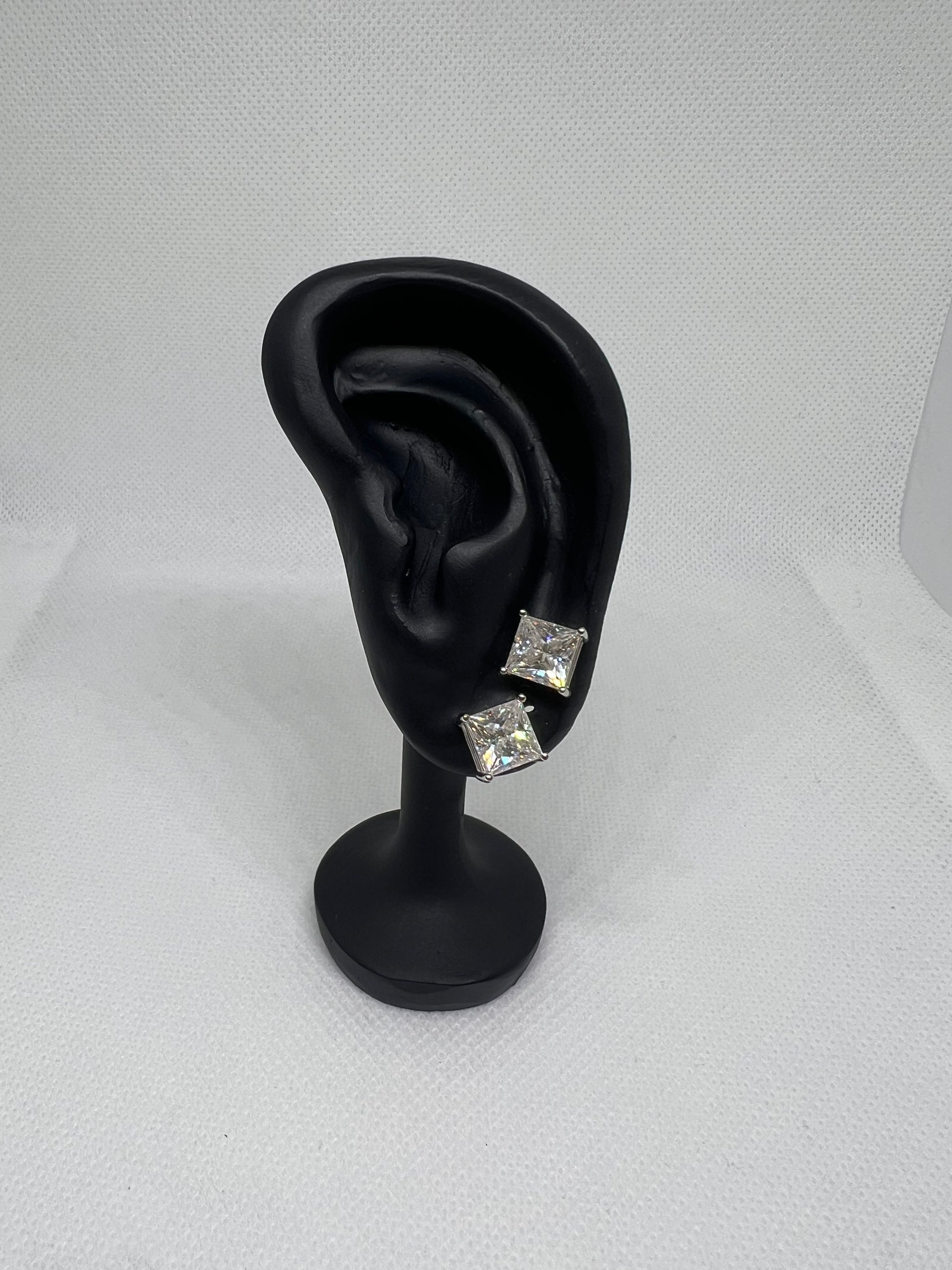 Sterling Silver Square Solitaire Glacier Moissanite Earrings